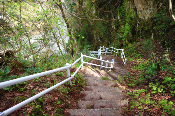 田んぼの中にある駐車場から歩いてすぐの所に急な階段があります。