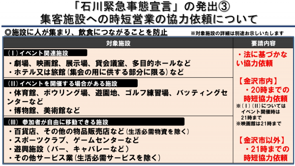石川県内では金沢市が適用地域となり、県は同市内の飲食店に対し、終日の酒類の提供自粛を要請できるそうです。