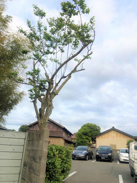 なので今日は若手社員さんが駐車場の木を剪定してくれました