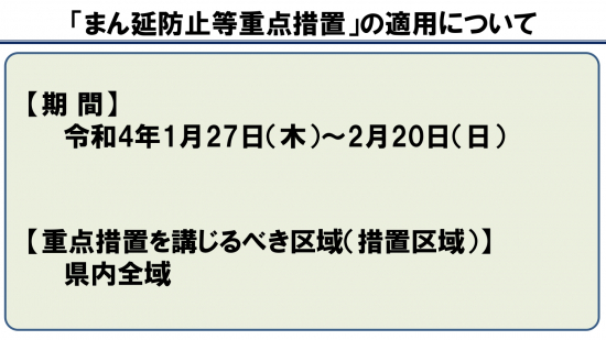 県は明日よりまん延防止重点措置を適用すると発表しました。