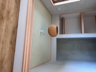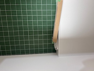 グリーンのタイル調を入れてちょっとレトロな雰囲気に