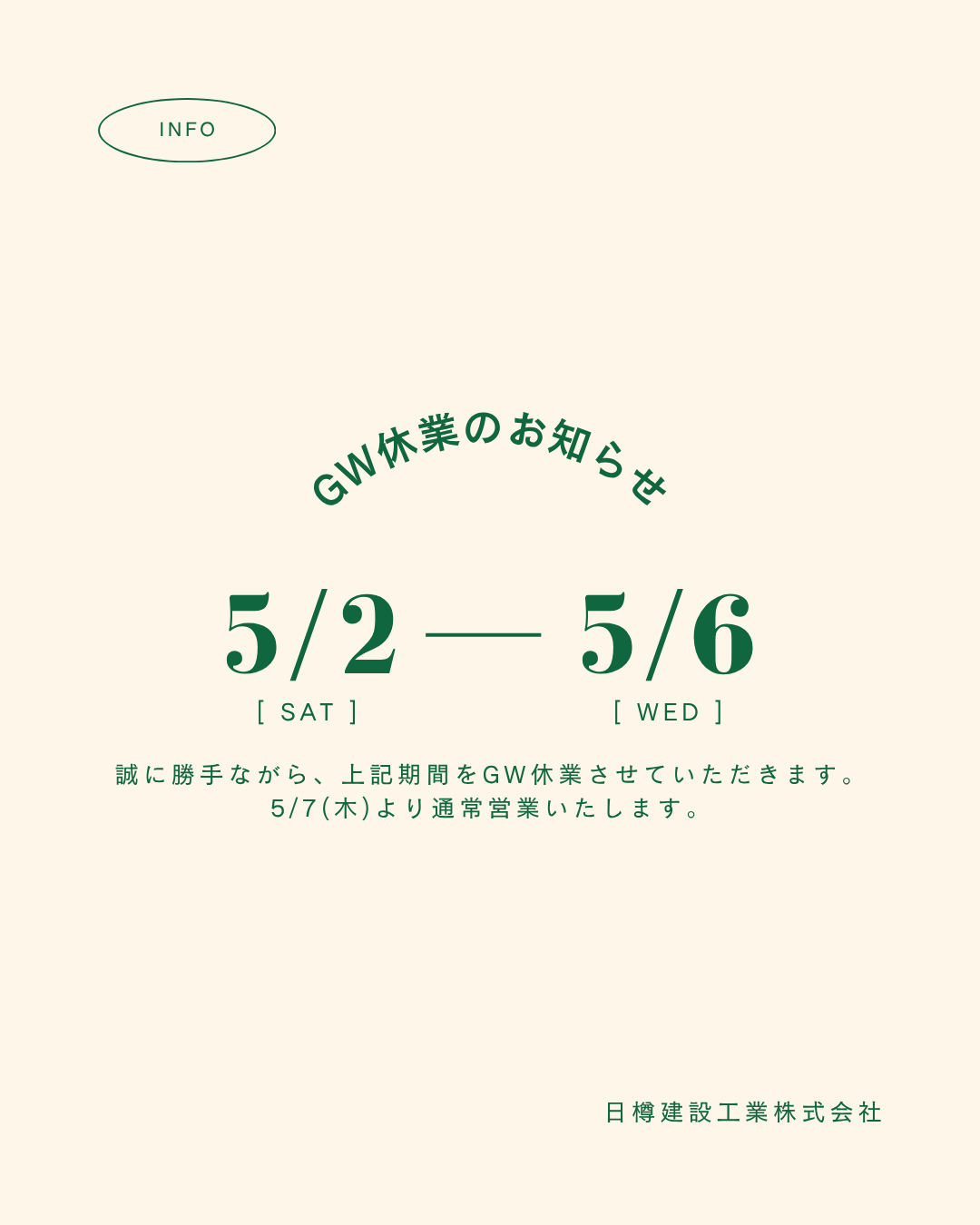 GW休業日のお知らせ